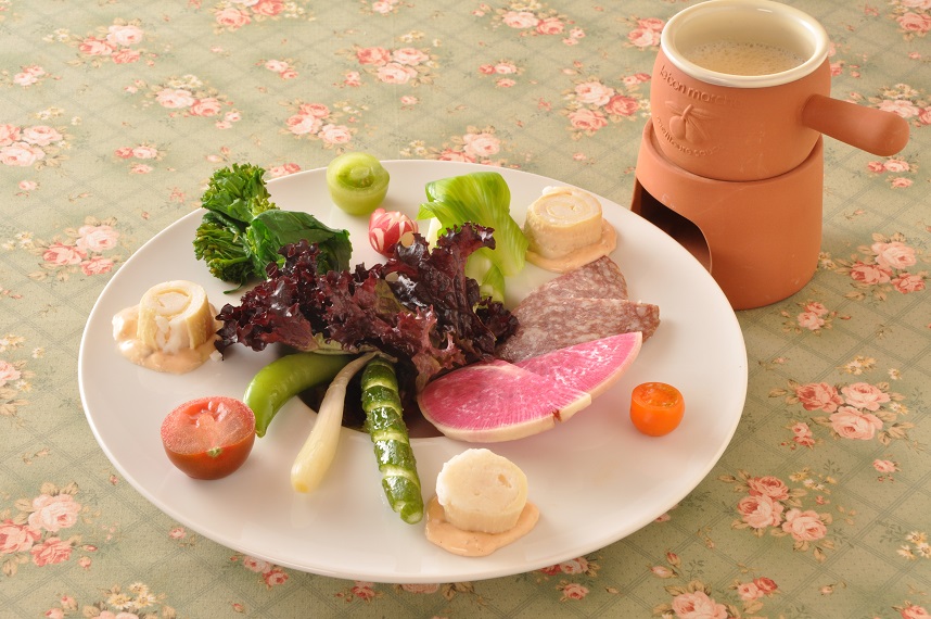 ●オードブル……… 筍のファルスを彩り春野菜のバーニャカウダと共に
