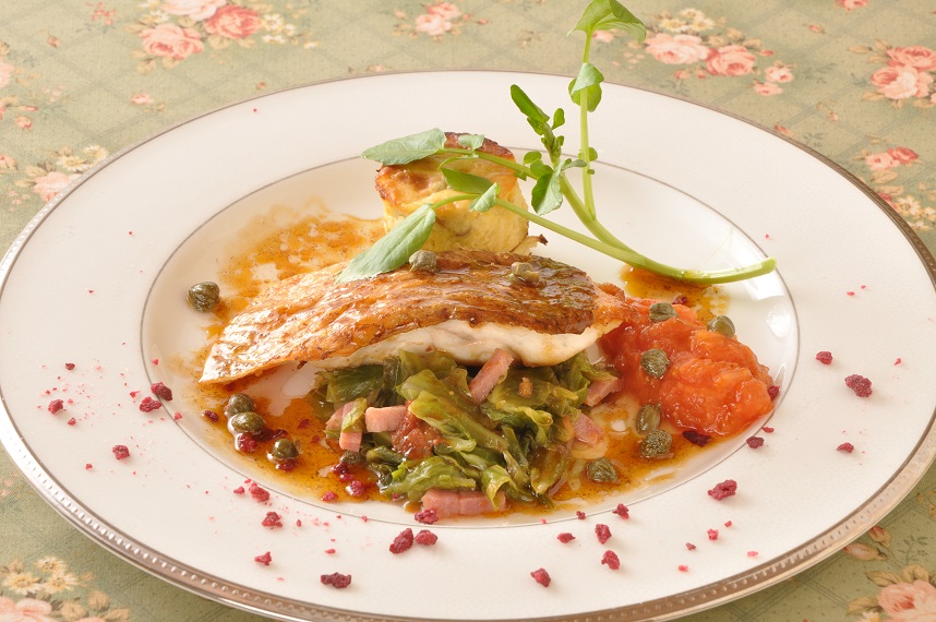 A:真鯛のムニエールと春キャベツのエチュベ 焦がしバターソース