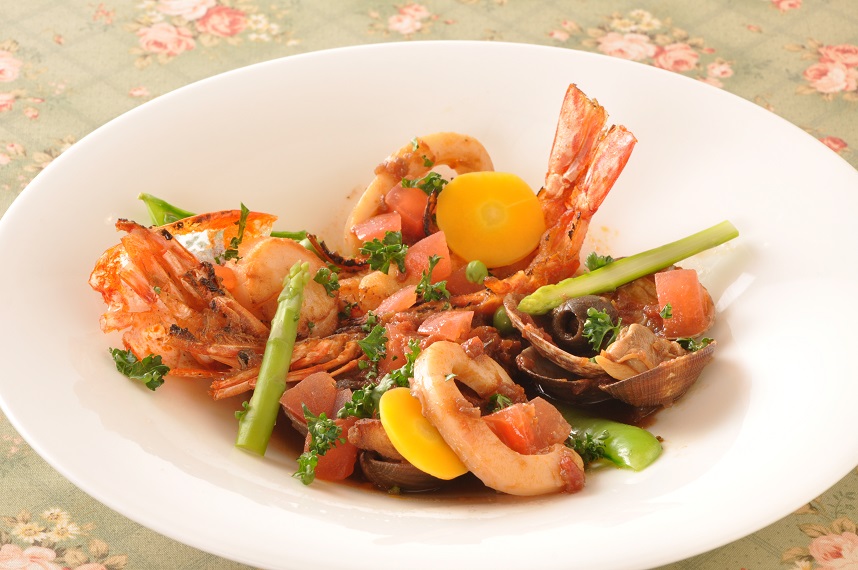 B:魚介の赤ワイントマト煮込み イタリアンブイヤベース